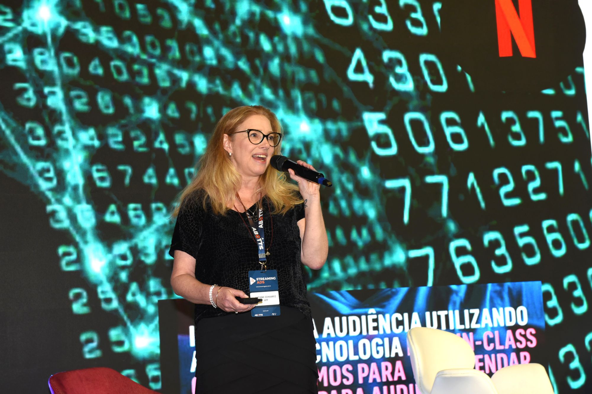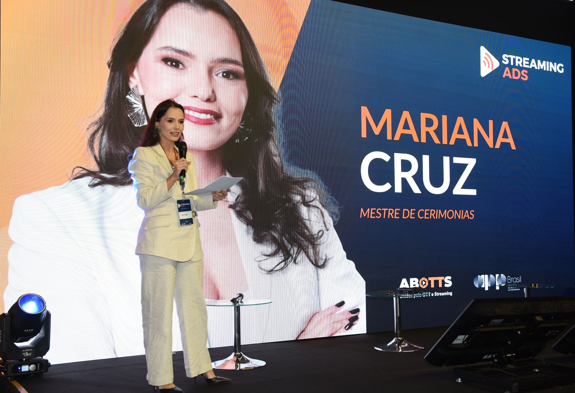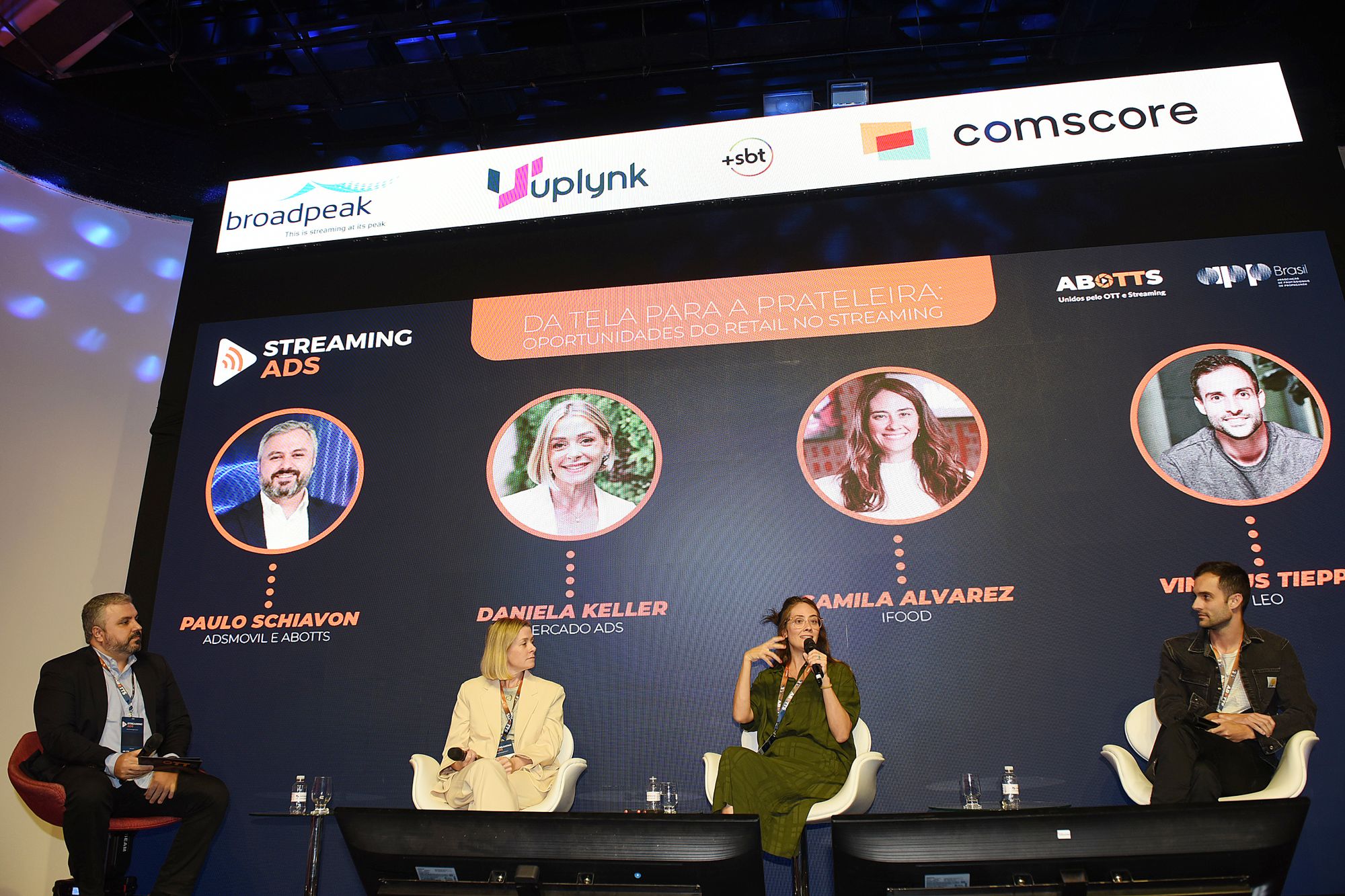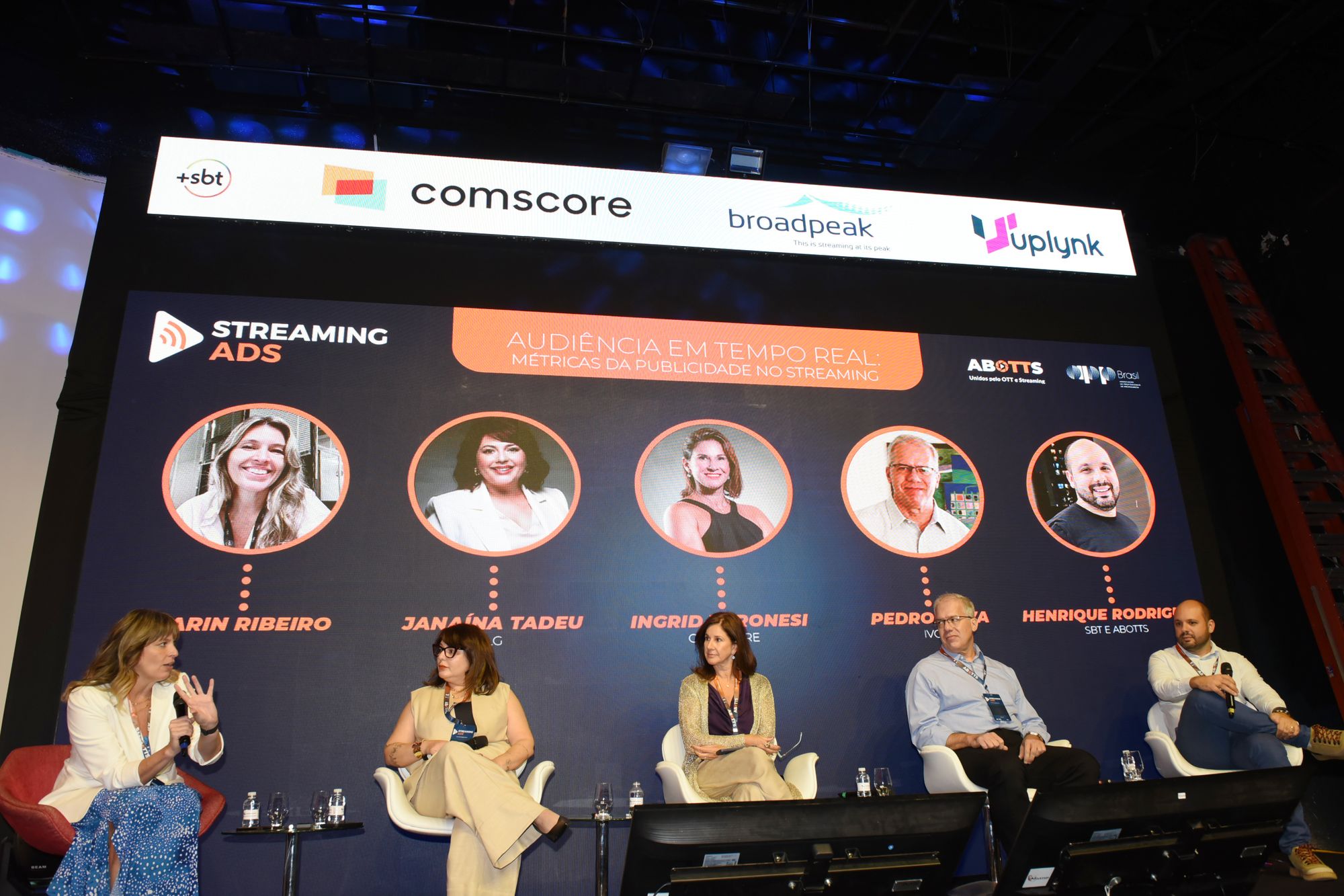 Karin Ribeiro (moderadora), Janaína Tadeu (LG), Ingrid Veronesi (Comscore), Pedro Silva (IVC) e Henrique Rodrigues (SBT e ABOTTS)Karin Ribeiro (moderadora), Janaína Tadeu (LG), Ingrid Veronesi (Comscore), Pedro Silva (IVC) e Henrique Rodrigues (SBT e ABOTTS)Mariana Cruz, vice-presidente de Comunicação, Inovação e Tecnologia, da APP Brasil, atuou como a mestre de cerimônias do eventoStreaming Ads aconteceu na Casa Abotts, em São Paulo